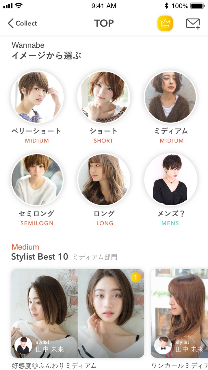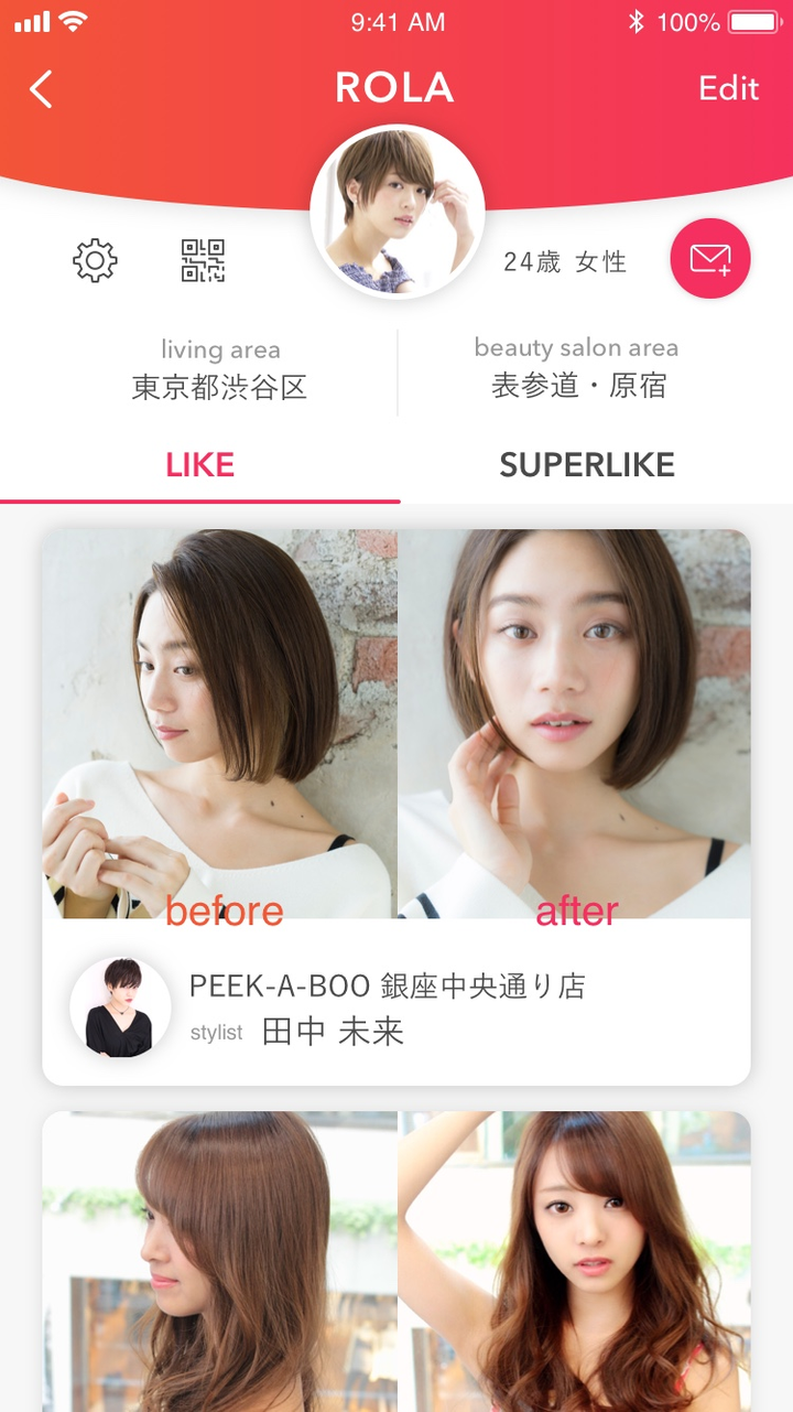 お客様のなりたいイメージとヘアスタイリストを繋ぐアプリです。 スタイリストが投稿している、ヘアスタイルのbefore/after写真をスワイプで投票できます。ランキングがわかったり、美容師の人とメッセージすることができます。 スタイリストの方にとっては技術を見てもらって、アピールできるような仕様になっています。毎月コンテストが開催され、上位の方はランキングに載ることができます。