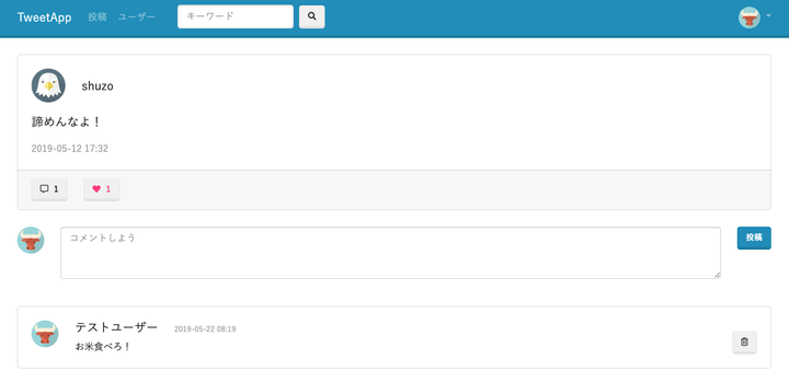 TweetAppはProgateでRuby on Railsを学んだ直後に作成したポートフォリオ用のサンプルアプリケーションです。 実際に動くものを作ろうとHerokuにデプロイするところまで行いました。 https://github.com/hideyuk1-jp/tweet-app