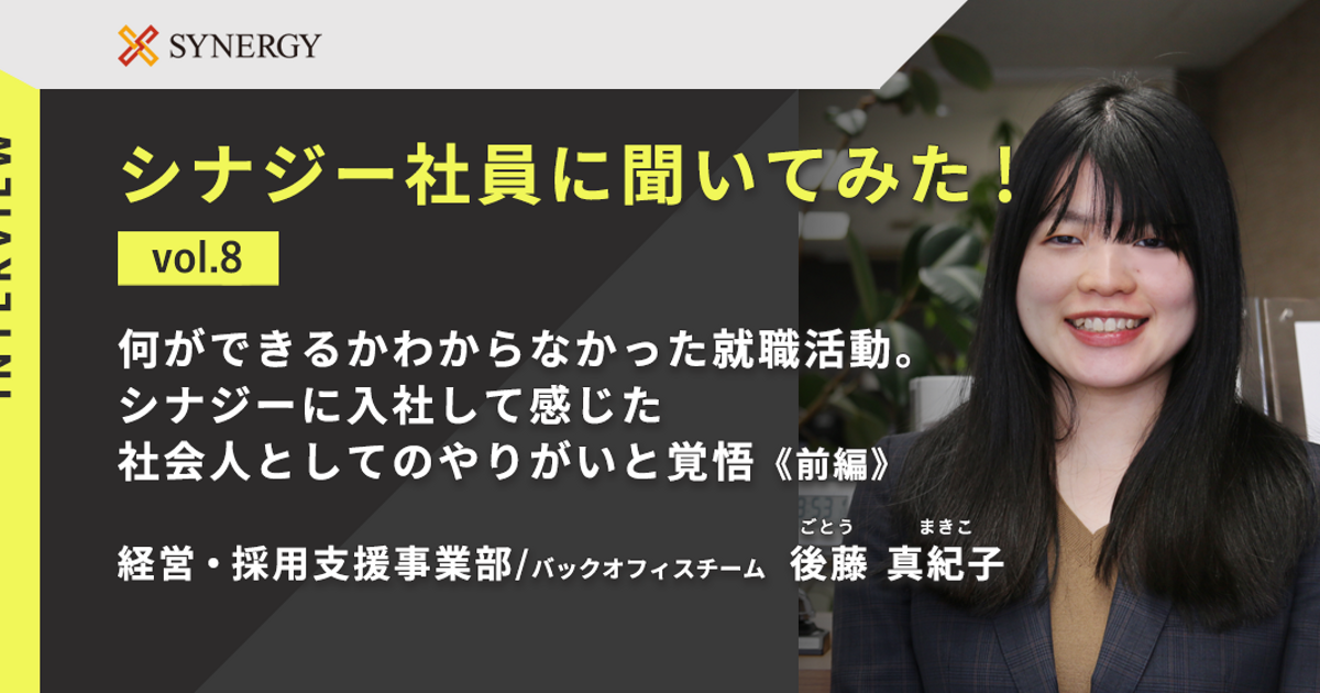 【インタビュー企画】第8回 何ができるかわからなかった就職活動。シナジーに入社して感じた社会人としてのやりがいと覚悟《前編》