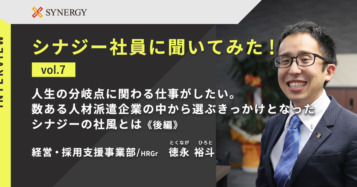 【インタビュー企画】第7回 人生の分岐点に関わる仕事がしたい。数ある人材企業の中から選ぶきっかけとなったシナジーの社風とは?《後編》