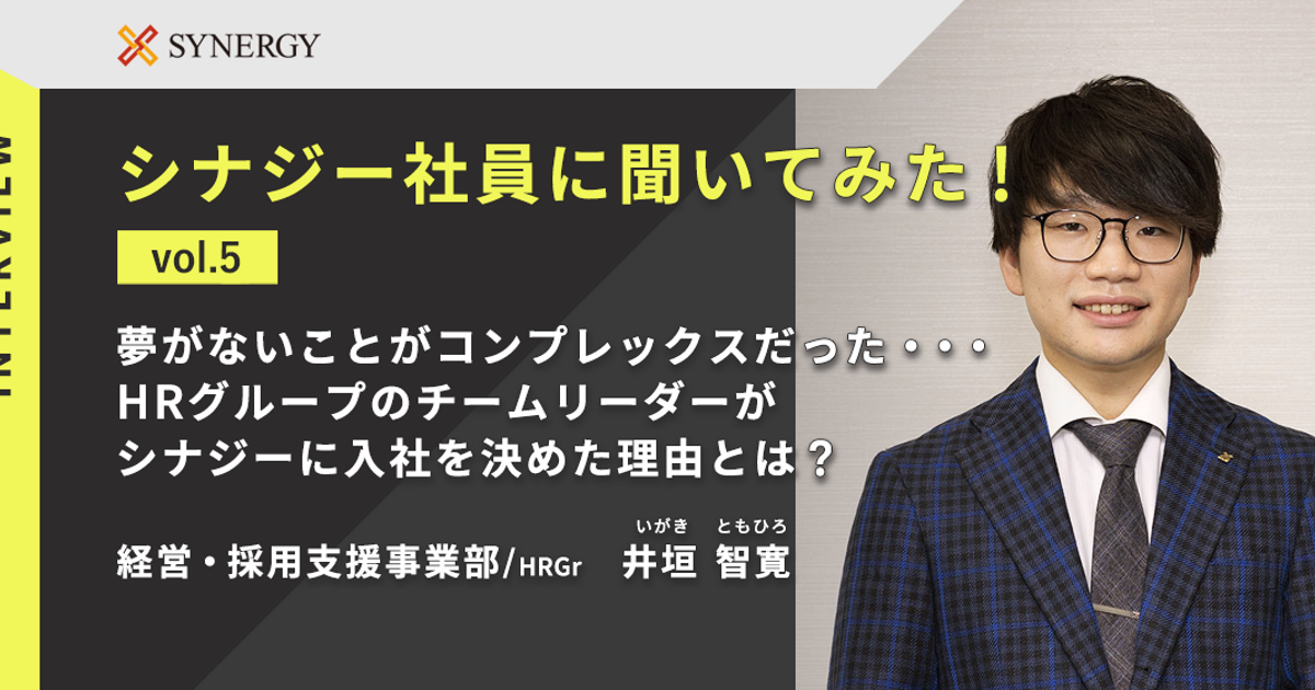 【インタビュー企画】第5回 夢がないことがコンプレックスだった...HRグループのチームリーダーがシナジーに入社を決めた理由とは?