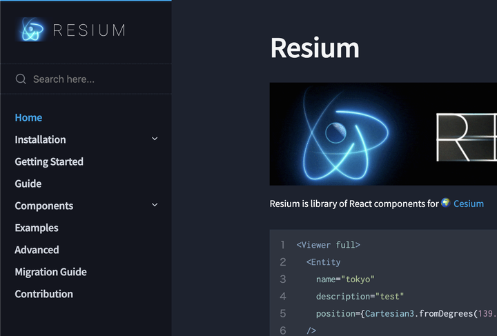 Cesium(WebGLによる3D地球儀によるビジュアライゼーションのためのJavaScriptライブラリ)をReactで手軽に使えるようにするライブラリ。 学生時代から個人的に開発を始め、現在はダーウィン社のOSSとなっている。