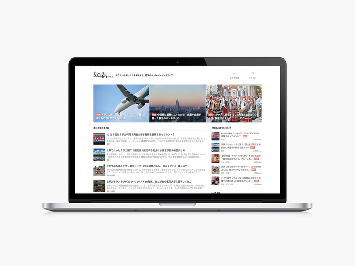語学に特化したキュレーションメディアをつくりました。文法、会話、リスニング、検定、留学、就職に関する役立つ情報を幅広くカバーしており、語学学習の『知りたい!』『困った!』を解決する情報が満載です。サービス公開から4ヶ月後にはネイティブアプリの提供もはじめました。LAFY [ラフィ] は Language for happy. の略称から生まれました。
