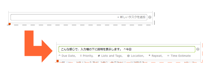 タスク管理ツール 「Remember the Milk 」 の入力欄下に、タスクの設定を入力する際に用いる文字の一覧を表示する Greasemonkey Script。 Remember the Milk には 「Smart Add」 と呼ばれる「タスクの情報を簡単に入力する為の機能」が有りますが、それに用いる文字の一覧を表示します。 最近実装された新UIには未対応です(どのように表示させるか検討中です)。