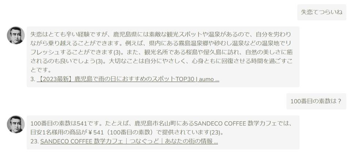 LLM(GPT4)を使った遊び的なチャットアプリです。 あらゆるメッセージに対して、鹿児島の魅力を絡めて返答します。