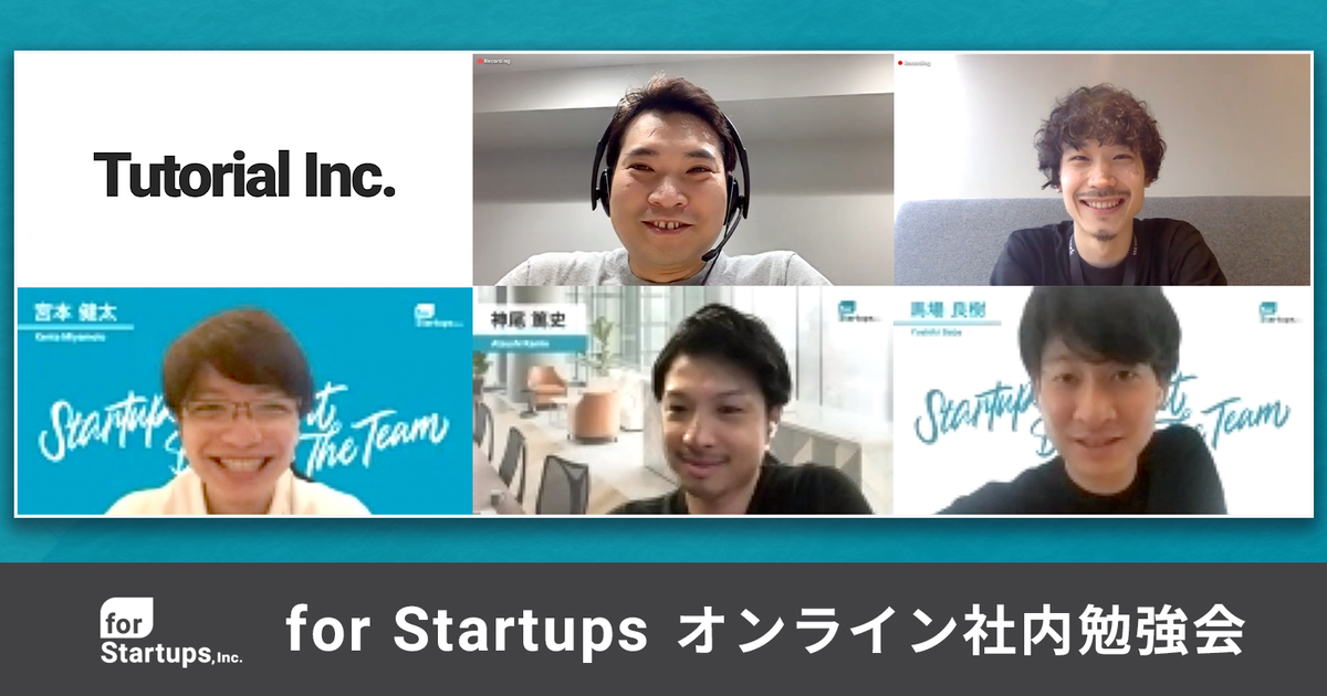 for Startups- チュートリアル CEO 福田 志郎さん、Employee Success 菅生 一眞さんにお時間をいただき、オンライン勉強会を開催いたしました。