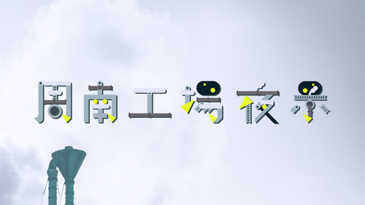 ロゴのコンペに応募した作品です。工場の夜景をイメージして、煙突や煙、はしごやライトといった小さなパーツがブロックのように組み合わさり、入れ替わりながらロゴをかたちづくっています。