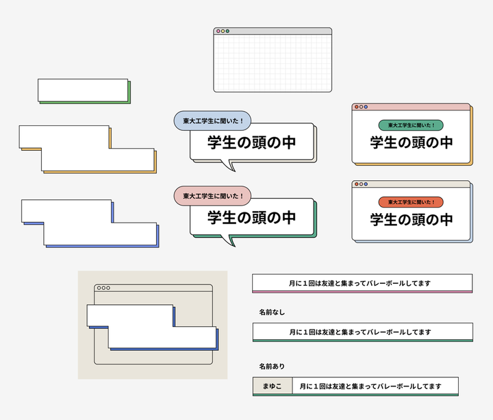 東大や工学部はnot for meだとはなから決めつけている学生や親御さんたちに、工学の面白さや東大工学部のリアルを伝えて、「東大工学部」をより身近に感じてもらえるようなメディアにすることを目指して、instagramアカウントのメインビジュアル、投稿のデザインコンポーネントを制作しました。