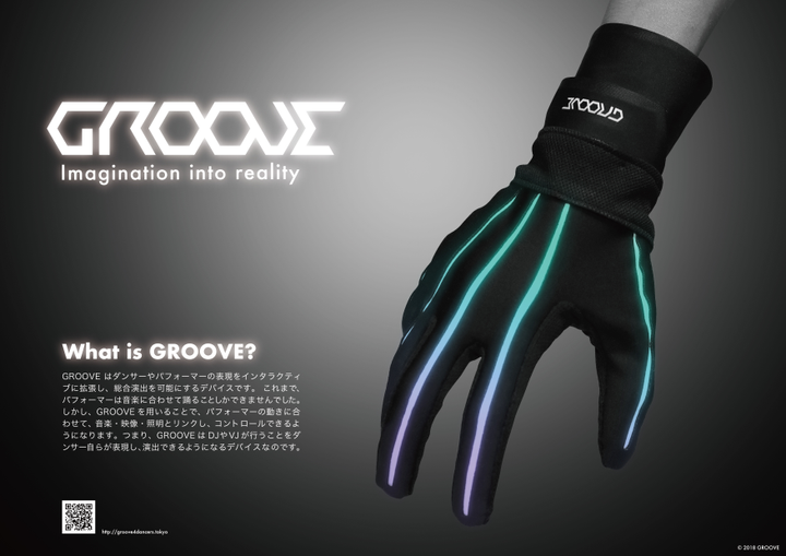 ダンサーのためのグローブ。 ジェスチャー認識することで、ダンスをしながら音楽や照明などの環境を操作することができる。