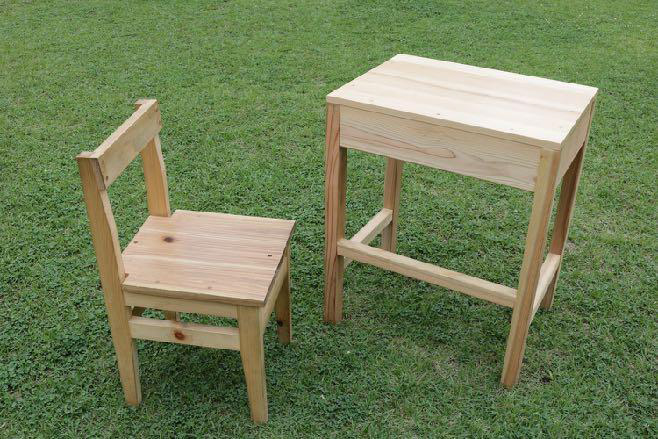 中高6年間を通して、自ら木材で作った机と椅子で学校生活を過ごしました。その材料は自由学園の学生が代々名栗植林地で育てた木材を使用しております。