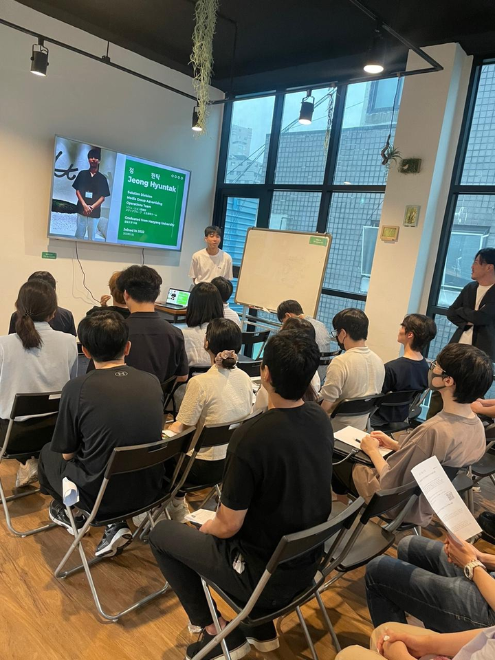 ・会社説明会、座談会登壇 ・24新卒就活生(韓国人人材)面接 韓国人社員として、ソウルの採用イベントで会社説明会に登壇。日本就職を目指している韓国TOP10大学の就活生と座談会を行い、エントリーした24新卒就活生の面接を実施。