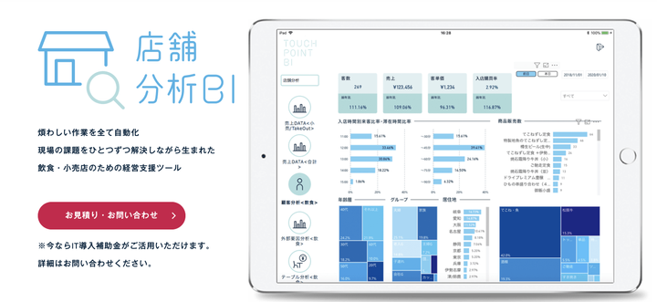 実店舗向けデータ分析ツールTOUCH POINT BIの開発を行いました。 Webアプリケーションの開発をNext.js, GraphQL(Apollo Server, Express), Laravel, Python、データ基盤についてはAzureのサーバレスコンポーネントを用いて構築を行いました。 その他サービスの継続的な成長のためのプロダクトマネジメント業も行いました。