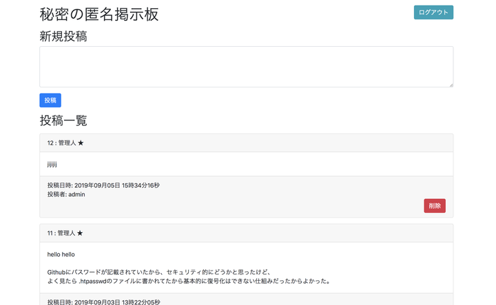 実装機能:投稿機能、ログイン機能、新規登録機能、ユーザー情報編集、削除機能、セキュリティ、デザイン github: https://github.com/ifuriito/secret-board