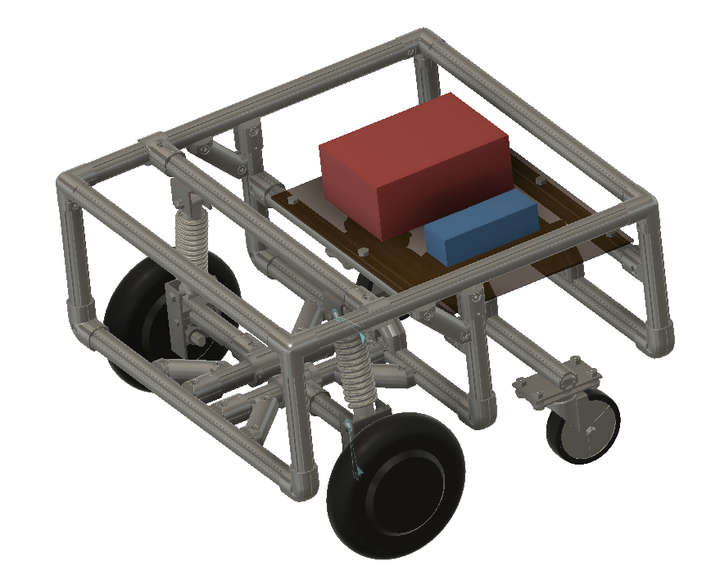 自律移動ロボット "Emu"では2cmの段差で大きな衝撃が伝わり、カメラ画像が大幅に乱れた。そのため、今回は足回りを強化し、前輪にマクファーソン・ストラット、後輪にリジットアクスル形式のサスペンションを導入した。 足回りを自由に交換できる方式にしているため、そのほかにクローラ、廉価版や高速走行用のサスペンションなしのロボットに組み替え可能になる予定である。
