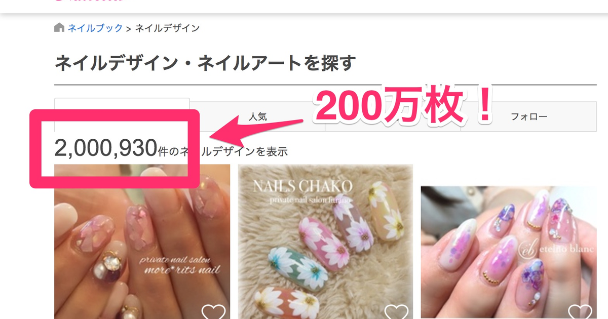 「ネイルブック」の投稿写真が200万枚を突破しましたー。世界中のネイル好きの皆さん、ありがとうございます!!