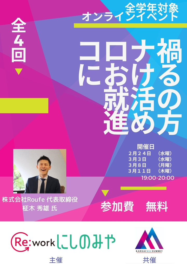 西宮市が運営している就労支援事業Re:workにしのみや様から依頼を受け関西圏在住の学生対象企画を実施。