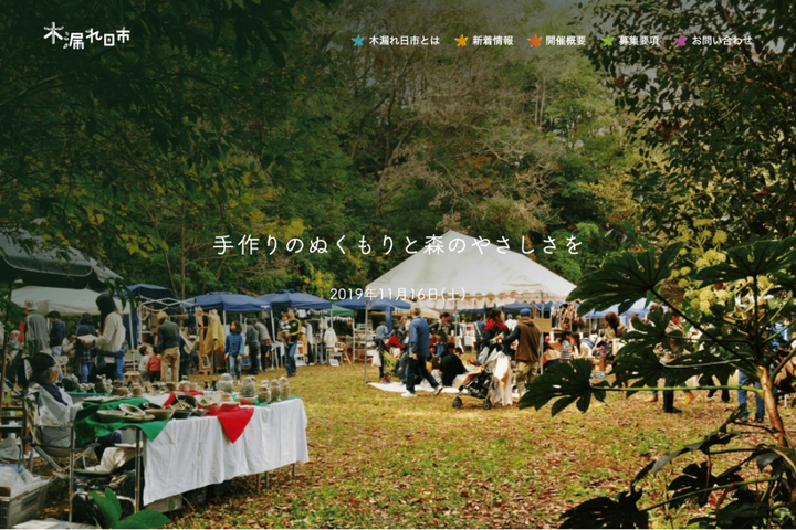 木漏れ日市とは、交野市で行われる手作り市です。 ものづくりをしている作り手には発表の場として、来場者には手から生み出された作品とふれあう場とし、日々の暮らしを豊かにしてもらうことを目的にしています。 デザイン・コーディングを行い、公式サイトを制作しました。