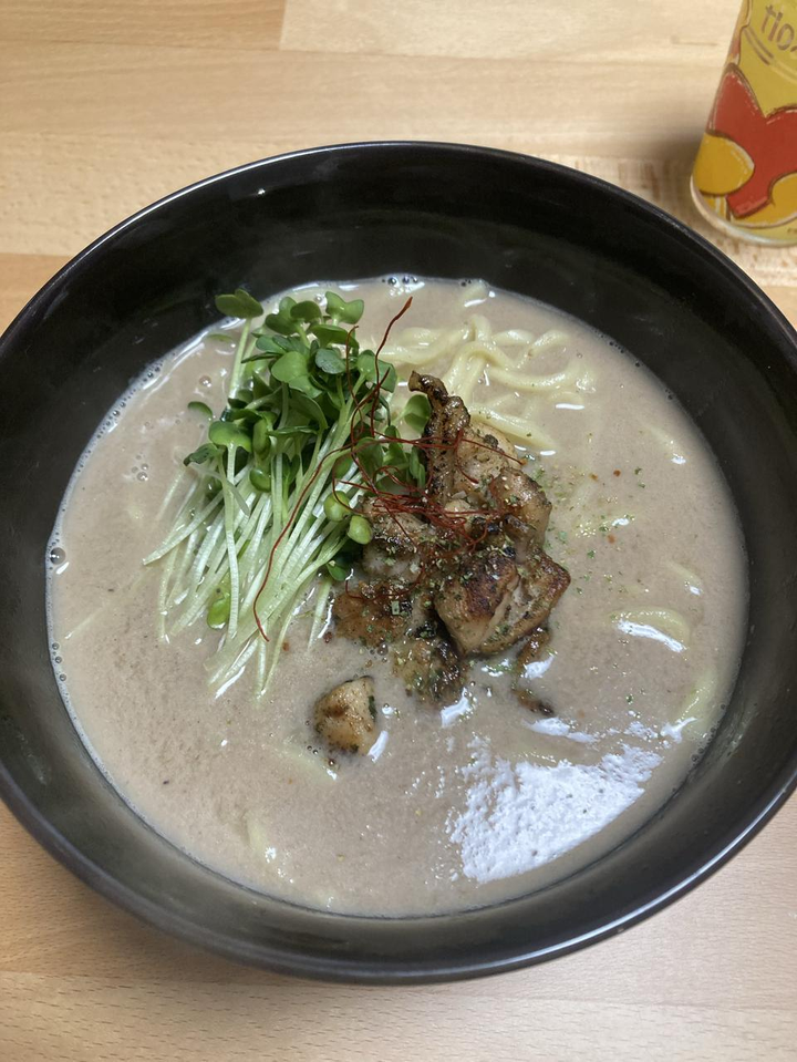 自家製の鶏白湯ラーメンです! スープを鶏ガラなどから作っております! 中々コアな趣味ですが、きっかけ京都にある極鶏さんのラーメンが食べたいと思い、自分で作っちゃえと思ってと思ったのが始まりです。 研究熱心な性格なので試行錯誤を繰り返してようやく完成⭐︎ お金が貯まれば、今の仕事を続けながら、ラーメン屋を運営したいって思いがあります!