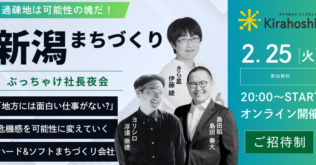 現在は、新潟県を中心に移住促進ソリューションの提供を行なっておりますが、きら星のネットワークを全国に広げていきたいと思っています。 特に20代を育成して、地域プロデューサー&プレイヤーとして全国に送り込むことに注力していきます。興味がある方はぜひカジュアル面談でお話ししましょう!
