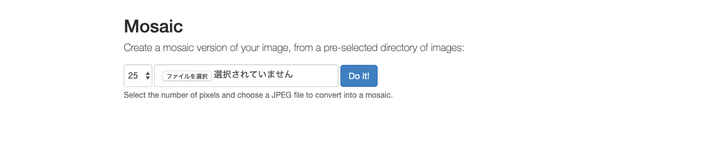 Goの勉強のために、標準ライブラリだけでWebアプリケーションを作りました。モザイク写真を生成するアプリとなっており、ゴルーチンやチャネルを使って並行処理による処理の高速化を行っております。