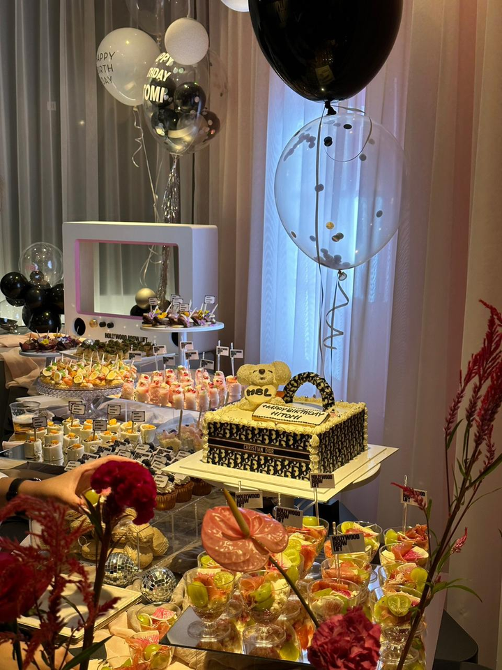 10月あたまに行った月次カンファレンスで 9月28日が誕生日だった当社の代表福井のお誕生日をお祝いしました🥂✨ 少し遅くなってしまいましたが社員みんなでお祝い出来て良かったです♡ catering : @fete.en.rose balloon: @party_mimi_711 cake : @marinehouse_yourstorycake