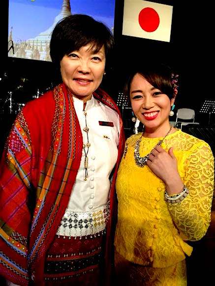 ミャンマーで一番有名な日本人歌手であるすわじゅんこさんのライブレポートを行いました。写真は安倍昭恵総理夫人とすわじゅんこさん。