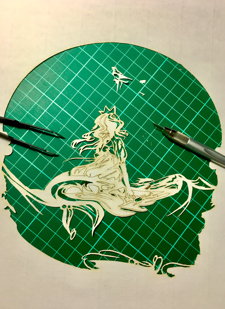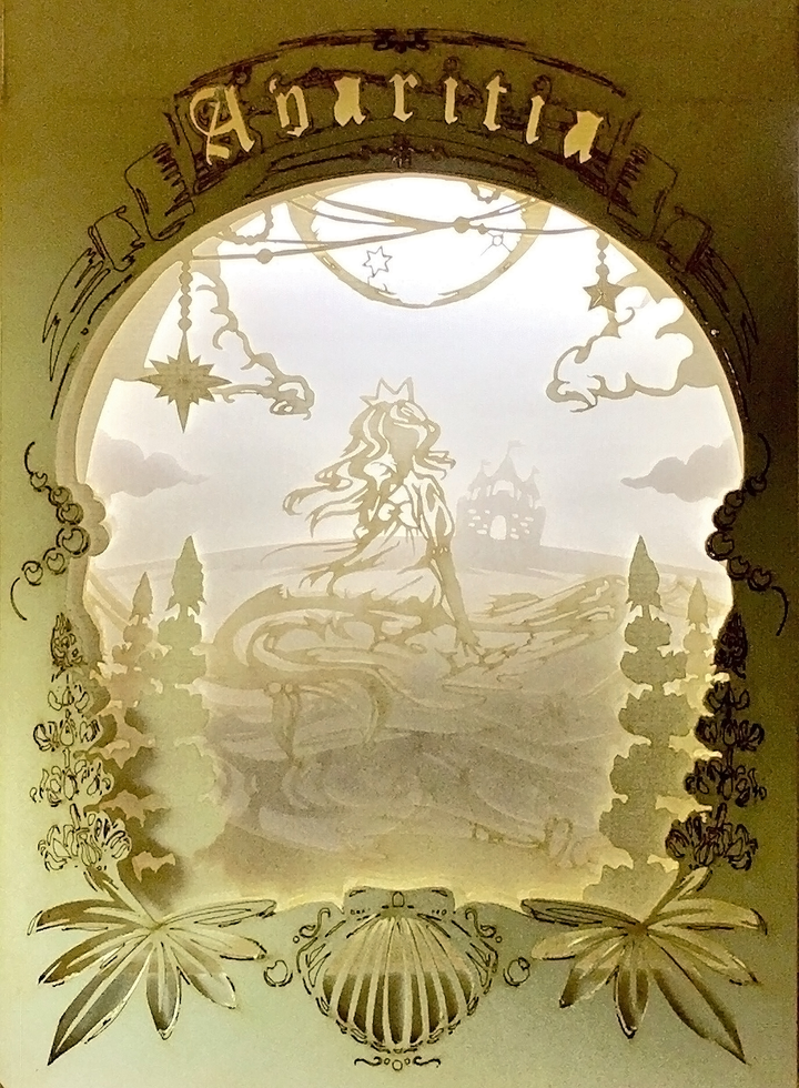 【切り絵の紙アート】(レーザーカット使用) ”欲深き人形姫、尾鰭と引き換えに人間の足を得た。 陸上生活する願いは叶ったのに、その手を伸ばした先には 天上の星…”