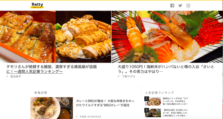 コンセプト作り・ディレクションを担当。 SEO観点でドメインを本体と分離。 ビジュアルが見えやすいようなUI、他記事への遷移を促す機能、前にあった「グルメニュース」のRSS不具合改善等を実施。