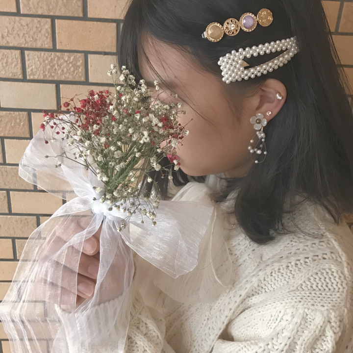 2人1組になりインスタ映えをテーマにモデル撮影 - ドライフラワーと花のピアス、パールを使用したアクセサリーなど、統一感を持たせることにより全体の雰囲気を柔らかなものに表現