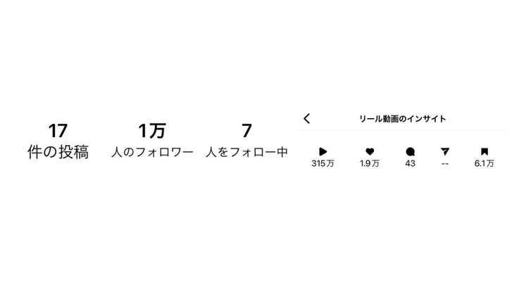 Instagram17投稿で1万フォロワー、リール300万再生越え