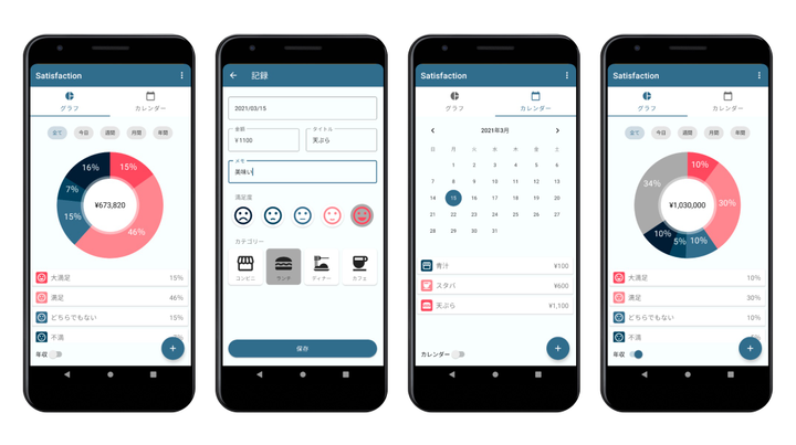 Kotlinで作成した、支出と共に満足感を記録できるアプリです。 年収が103万円を超えると、所得税をはじめとした税金を負担することになります。そのため、多くの学生が年収を103万円以下に収めるように働いています。つまり、学生の稼ぎや年収には、103万円という限界があるのです。 あなたはそんな限りあるお金を、どうせ使うなら、満足感を味わいたいという思いから生まれました。 Playストアに公開しています。 https://play.google.com/store/apps/details?id=app.doggy.la_original