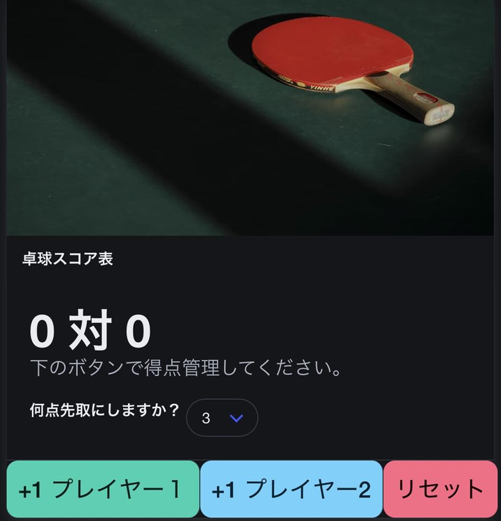 このアプリは、家族や友人との卓球対戦の際にスコアを簡単に記録・表示できるツールが欲しいと思い、制作しました。 また、JavaScript のイベント処理やDOM操作、ボタンのスタイル切り替えなどの基本的なフロントエンド技術を実践的に学ぶことも目的としています。