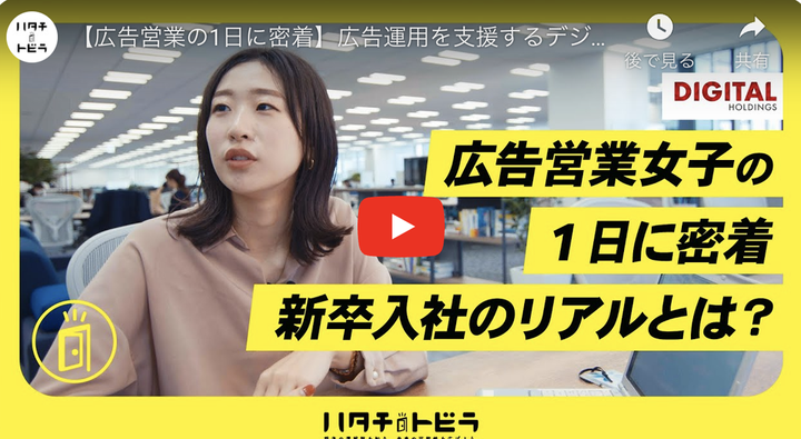 「個人と組織の可能性を広げる採用広報を」をコンセプトに、働く人の1日に密着するジョブシャドウイング動画をディレクションしています。 入社前に仕事のリアルに訴求することは、“リアリティショックの是正”や“コミット向上”に寄与することが明らかになっており、「内定辞退を減らす」、「定着率を維持する」などの効果を発揮しています。 将来の選択肢を正しく理解してもらうことで、学生の可能性を広げることに企業の皆様と一緒に寄与していきたい!という想いで、企画から納品まで伴奏しています。