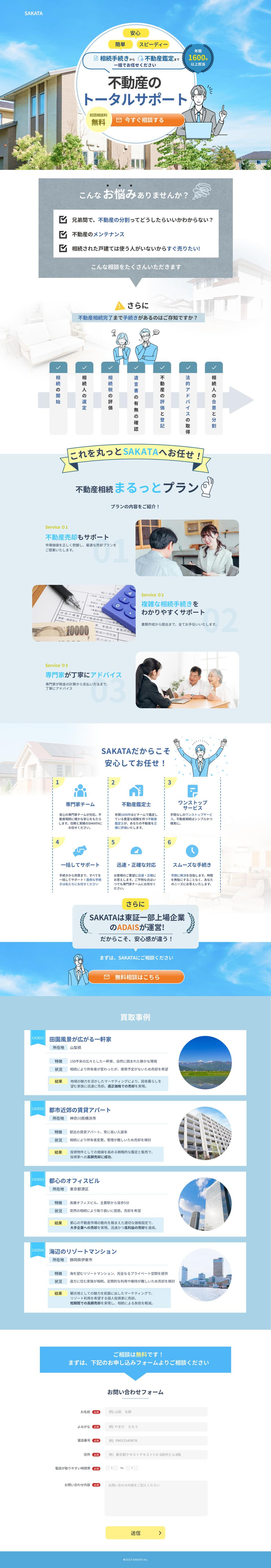 担当:LPデザイン 制作日数:1週間 ターゲットとなる40代の世代は子育て・仕事・親の介護ととても忙しい世代です。全て丸っとおまかせしてしまいたい、願いを叶えるように他社との強みを重要部分がポイントで伝わるよう、イラストやあしらいで表現しました。