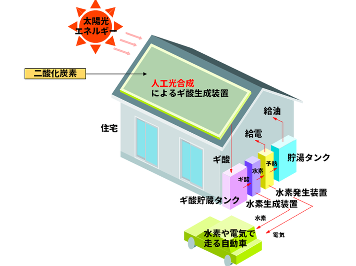 大阪市立大学と共同で、従来にない人工光合成技術を搭載した実験棟「IGパーフェクトエコハウス」の実証実験を開始します。 IGパーフェクトエコハウスの技術が完成すれば、エネルギーの自給自足が可能な住宅、二酸化炭素を活用する住宅が実現され、住宅業界の最先端を行くことになります。 ■人工光合成 温室効果ガスによる地球環境汚染という重大な問題の解決が求められおり、特に二酸化炭素については、地球規模で削減目標が定められています。私たち人類の力によって、植物が行う光合成のように二酸化炭素から有用な物質を作る技術を開発することができれば、二酸化炭素の排出抑制・二酸化炭素を活用したエネルギーの創出が可能になります。 家庭の消費電力の全てを賄うことができる技術を開発することが実現できれば、環境にきわめて優しい未来住宅が実現できると考えています。 「人工光合成技術」の完成を目指し、低環境負荷型水素エネルギー社会に貢献いたします。