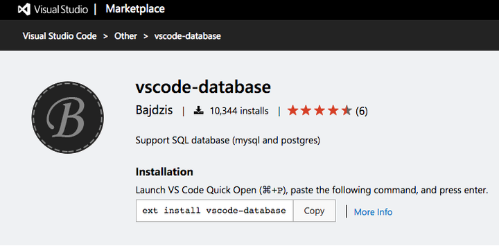 Keisuke KatoVS Code databaseSupport SQL database (mysql and postgres)marketplace.visualstudio.com でさらに詳しく