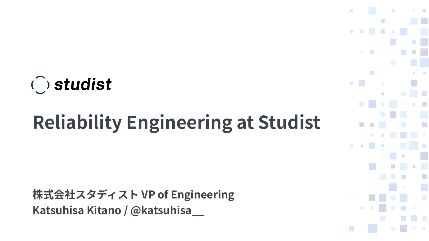 株式会社スタディストで執行役員 VPoE をしています。Web アプリ開発に関するサーバーサイド/フロントエンドの実装などを担当した後、SRE としてサービスの信頼性の制御に関する実装を担当。2021年3月からは VPoE として開発組織のマネジメント業務にも携わっています。