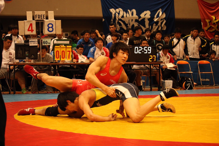 高校時代同様レスリングに打ち込んだ4年間でした。 周りにわオリンピック選手や日本代表選手ばかりでしたが必死に食らいつき4年生時にはチームの主軸として活躍