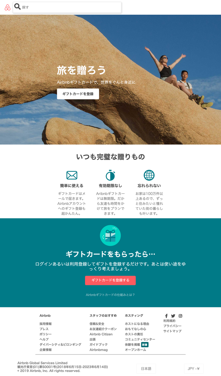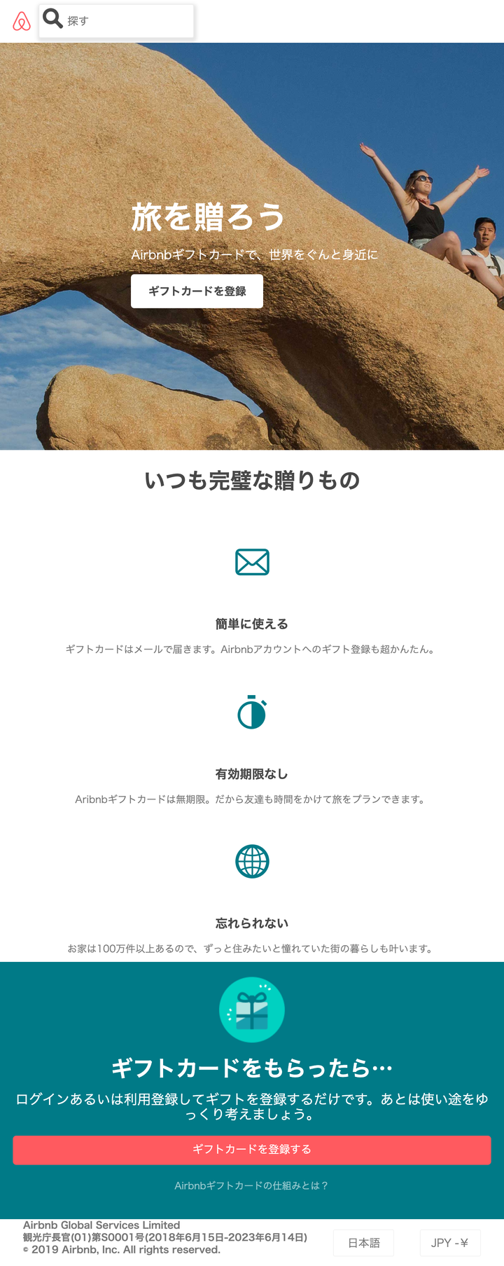 こちらは模写作品(元サイト:https://www.airbnb.jp/gift)です。レスポンシブで幅743px、1127pxをを区切りとして、レスポンシブ対応しました。細かい点は今後修正します。