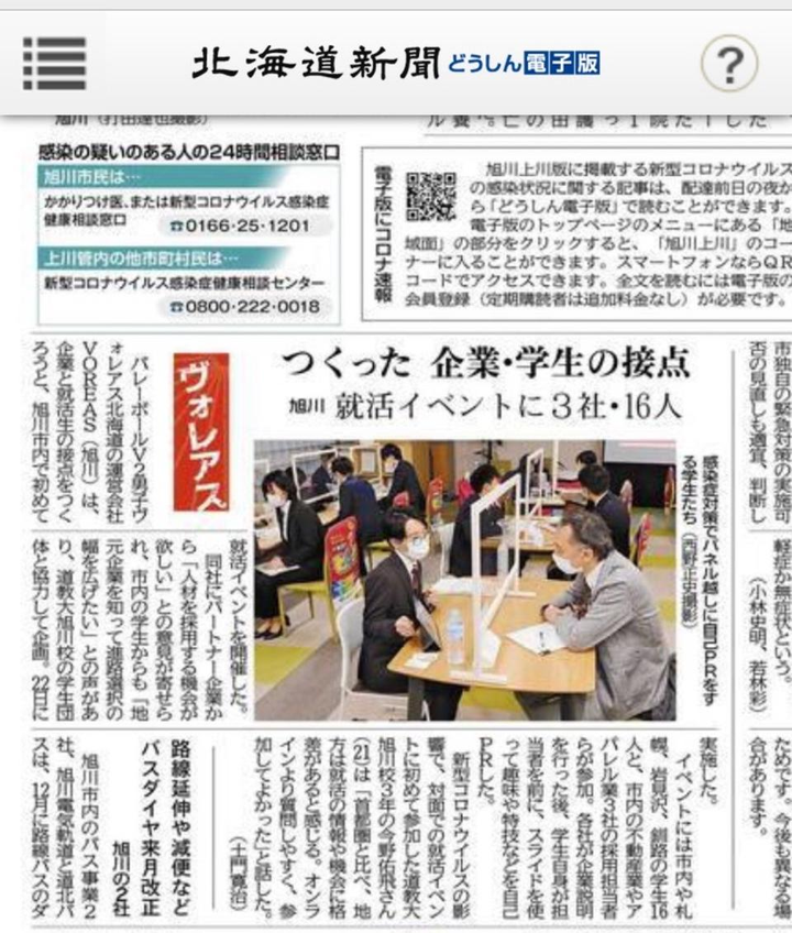 北海道旭川市のプロバレーボールチーム「ヴォレアス北海道」を運営する株式会社VOREASにて大会運営に関わる業務及び自身の学生団体で支援している大学生とチームスポンサー企業をマッチングする就活支援イベント等の新規事業の立案・実施