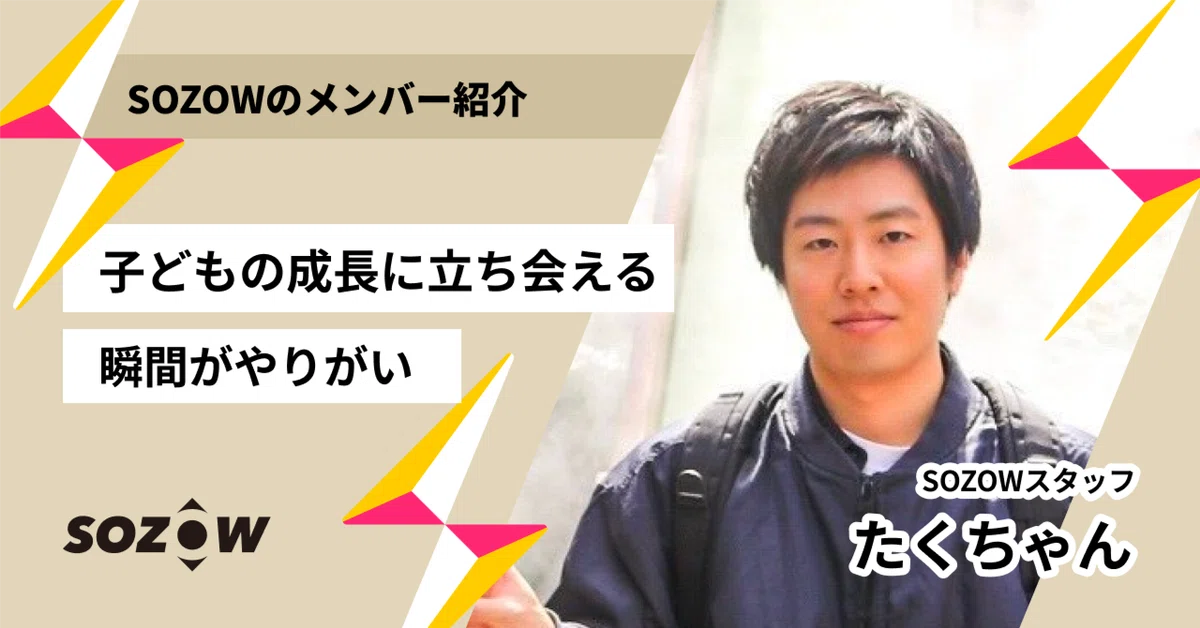 大学卒業後訪問型の不登校事業にてこどもや保護者と関わる。転職後㈱LITALICOの児童発達支援事業などで、こどもや保護者の相談業務に携わり、現在はSOZOW株式会社でスタッフサポートを担当。 好きな言葉は「やっている姿を感謝で見守って信頼せねば人は実らず」