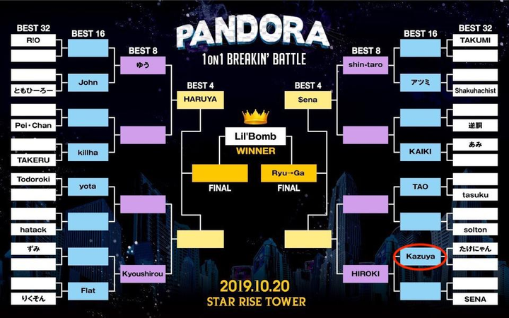 大学からブレイクダンスを始めました。未経験からのスタートでしたが、個別にレッスンを受講し、自主練習の質と量を上げて取り組んだことで、サークル内のソロダンスバトルで準優勝(128人中2位)、外部オープンソロダンスバトルではbest16(128人中16位)、大学対抗ブレイクダンスバトルではbest8(32大学中8位)という結果を出すことができました。 ※写真は外部オープンソロダンスバトルの結果でございます。 写真右下の「Kazuya」 が私です。