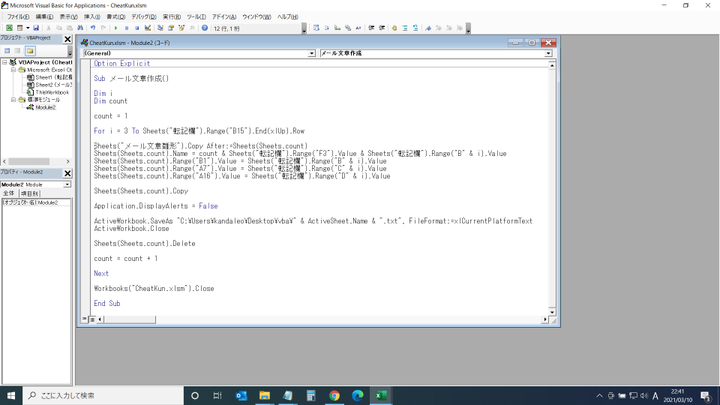 自動書類作成ツール「チート君」開発(ExcelVBA使用)
