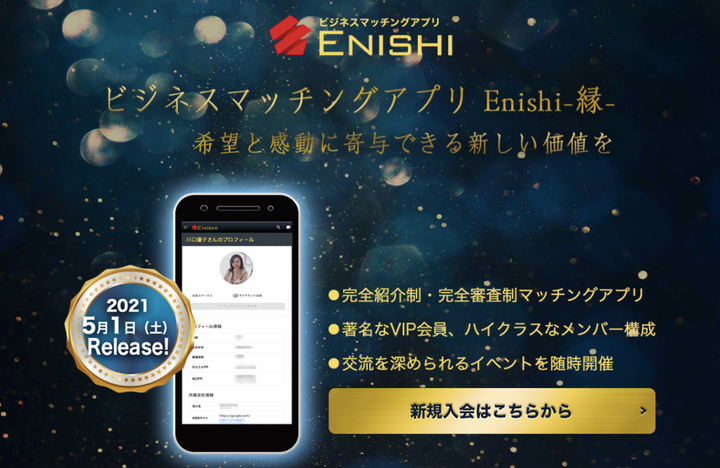 完全紹介制・審査制ビジネスマッチングアプリ「Enishi-縁-」