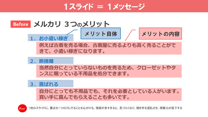 社員のプレゼン・スライドが酷いの会社のせいだと思う。社会人の7割以上は、プレゼンや資料作成のトレーニングをしたことがないのだという。だいたいは、同僚が作成した資料を使いまわしているから、成長がない。