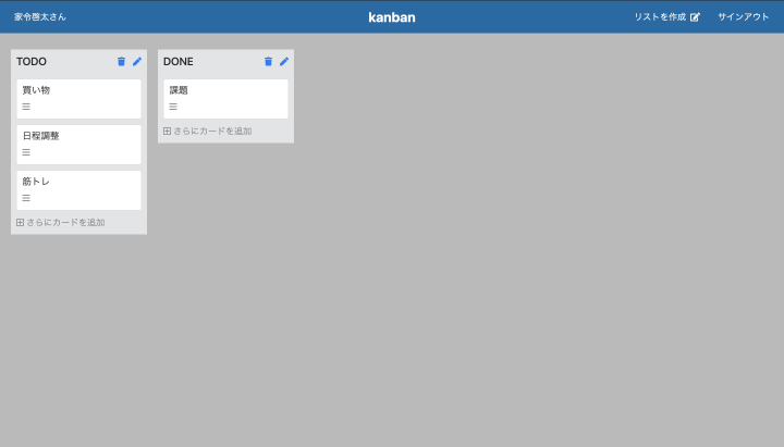 タスク管理アプリのTrelloを参考にした、 TODOタスク管理アプリです。主な機能は、Deviseを用いたサインアップ・サインイン機能、CRUD機能、カードの移動機能です。使用言語はRuby on Railsで、CSSフレームワークにはBootstrapとFont Awesomeを用いています。 https://kanban-kk.herokuapp.com/