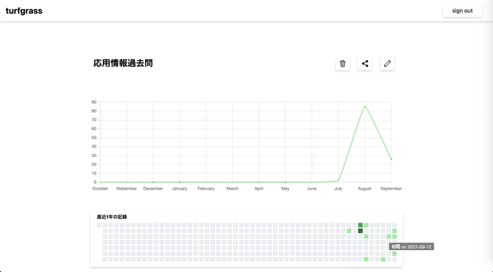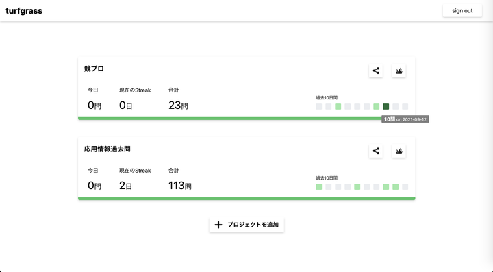Githubの草(contribution)から着想を得ました。 資格勉強などもどれくらい取り組んでいるかが定量的に記録出来れば便利だなと思い作成しました。 Front: Next.js(TypeScript) API: Golang / GraphQL Hosting: Vercel / Heroku