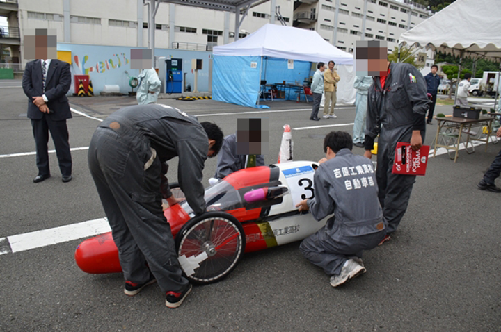 エコラン(エコノミーランニング・省燃費自動車競技)とは 限られた燃料(ガソリン1L)または電気でどれくらいの距離を走ることが出来るかを競う競技です。ガソリン自動車部門では取り外し式の燃料タンクで、一定距離走行後の燃料の減少量(燃料消費量)を量って、その燃料消費量から燃料1L当たりの走行距離(燃費)を求め競います。電気自動車部門では、ミニバイクに使われるバッテリー(12V・3Ah)2つで1時間の間にどれだけ走れるかを競います。 1年生~3年生の計30名の部員を束ね、機械や工具の整理整頓、安全管理、報告連絡相談を徹底し、難しい部分は皆で相談しながら作業を行ったり、大会に向かって一丸となって作業した高校時代の経験は私にとって財産です。