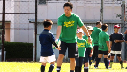 毎週、日曜日は、地元ラグビースクールのコーチや大会でのレフリーをしています(息子もそこに所属して、一緒に目標に向けて頑張っています)。