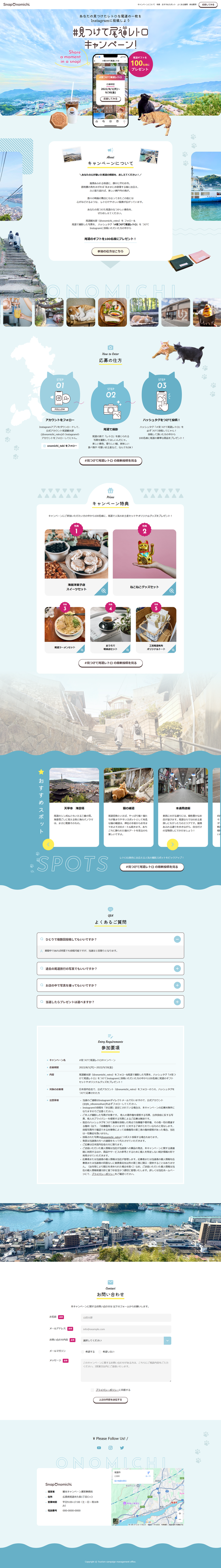 📌概要 -------------------------------------------------- 地方自治体で実施される架空のInstagramの写真投稿キャンペーンをイメージして作成しました。 📌 工夫した点 -------------------------------------------------- ・レスポンシブ対応 ・ハンバーガーメニューの実装 ・お問い合わせフォーム(仮)の実装 ・Googleマップの埋め込み ・アコーディオンメニューを利用したQAセクション ・Swiperを利用し、自動的に画像が流れるように実装 ・マウスホバー時に、画像が拡大されるように実装 📌 言語・ツール・サービス -------------------------------------------------- ・HTML, SCSS, jQuery ・Swiper ・VScode ・Figma